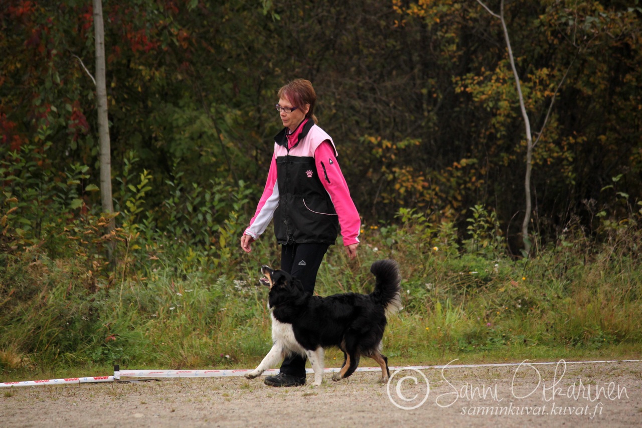 Tämä kuvahan kertoo enemmän kuin tuhat sanaa!!!! Nopsa on uusi Kainuun Kennelpiirin piirinmestari tokossa. Kisaan lähdettiin aika vähällä valmistautumisella, ja se kyllä liikkeissä näkyikin. Ollaan oltu niin pk-kisa moodissa, ja toko ollut aika sivussa, mutta onneksi vähän jotain tullut muistuteltua silloin tällöin.